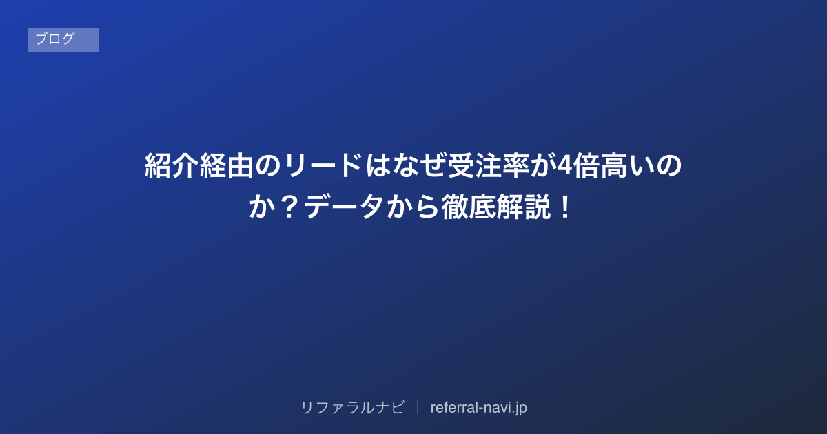 紹介経由のリードが広告経由の4倍の受注率を達成する理由をデータで解説。信頼の転移効果、CAC削減、LTV向上の3つのメカニズムを掘り下げます。