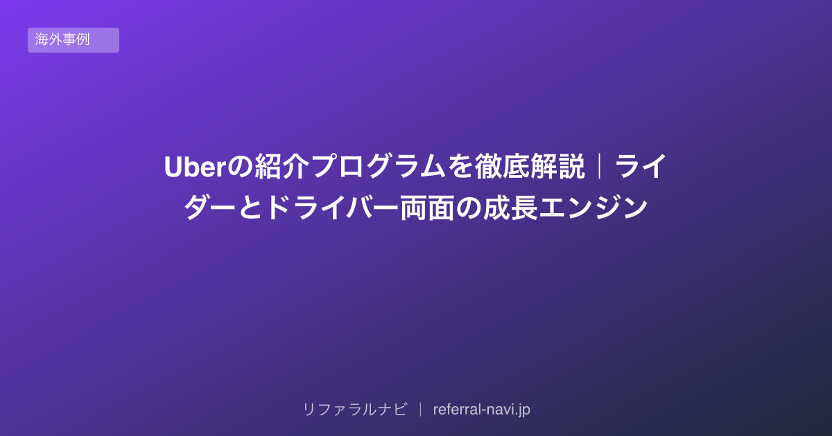 Uberが両面紹介プログラムで初期の50%以上を紹介経由で獲得した仕組みを解説。ライダー・ドライバー双方へのインセンティブ設計と日本企業への応用法を紹介します。