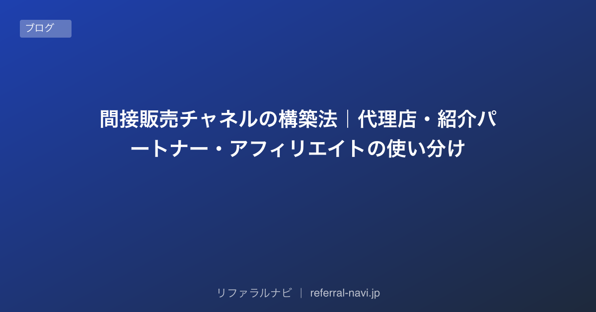 間接販売チャネルの構築法|代理店・紹介パートナー・アフィリエイトの使い分け