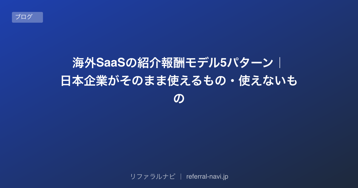 海外SaaSの紹介報酬モデル5パターンを解説。各モデルの日本での適用可否を税務・商習慣の観点から評価し、実践的なガイドを提供します。