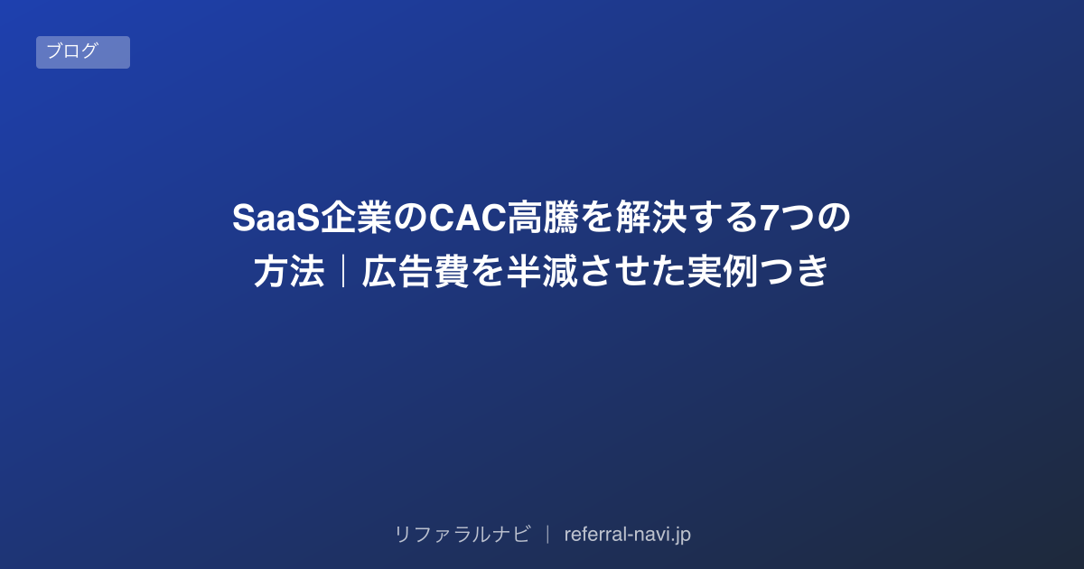 SaaS企業のCAC高騰を解決する7つの方法を解説。リファラルマーケティングで広告費を半減させた実例とデータを交えて紹介します。
